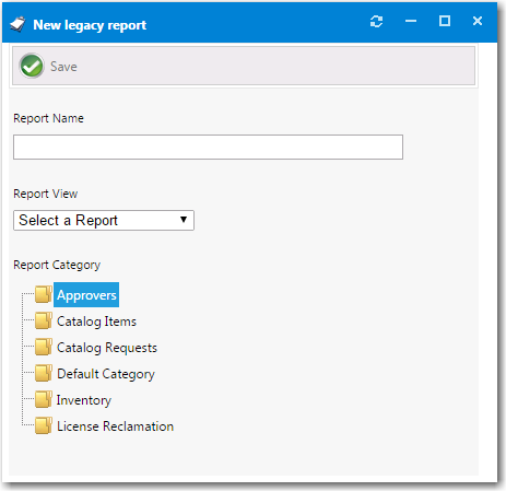 1. On the Report Management > Reporting view, click New Legacy Report . The New Legacy Report dialog box opens.