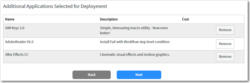 - Select the additional applications that you want to migrate and then click Add Applications . The applications are added to the Additional Applications Selected for Deployment table at the bottom of the panel.