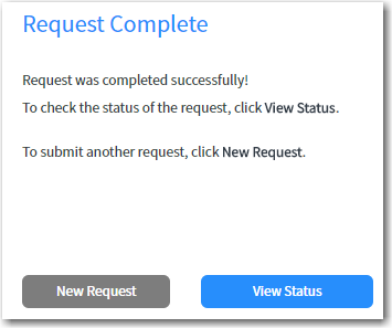 - Click View Status to open the Request Status page, which lists the status for all submitted requests. For more information, see Viewing Request Status.