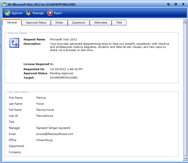 Rejecting a Request Rejecting on the Approve/Reject Tab